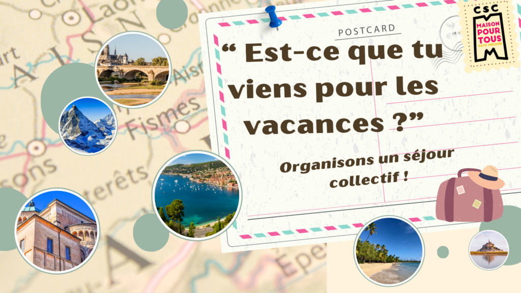 Un groupe d’habitant se réunit, discute et échange leurs souhaits puis ils choisissent une période et les dates du séjour, le lieu et le type d’hébergement, la ou les activités à faire sur place et c’est parti !