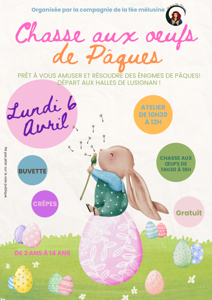 « Tous les Évènements Chasse aux œufs – Lusignan 6 avril - 10 h 30 min > 18 h 00 min gratuit « Grand concert de la Lyre Mélusine – Lusignan Découverte des oiseaux avec la LPO – Saint-Sauvant » Ajouter au calendrier Google Agenda iCalendar Outlook 365 Outlook Live Détails Date: 6 avril Heure : 10 h 30 min > 18 h 00 min Prix : gratuit Organisateur La compagnie de la Fée Mélusine E-mail : compagniedelafeemelusine@gmail.com Lieu halles de Lusignan
