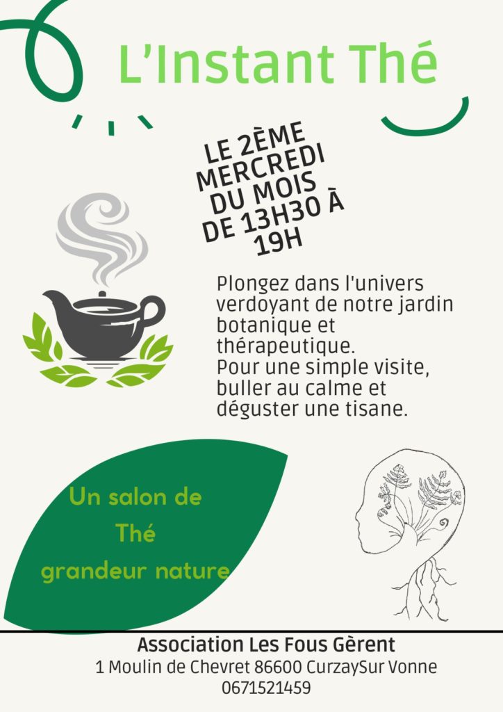 « Tous les Évènements “L’instant thé” un salon de thé grandeur nature – Curzay-sur-Vonne 13 mai - 13 h 30 min > 19 h 00 min « Atelier thérapeutique autour des plantes – Curzay-sur-Vonne Relaxation guidée – Coulombiers » Ajouter au calendrier Google Agenda iCalendar Outlook 365 Outlook Live Détails Date: 13 mai Heure : 13 h 30 min > 19 h 00 min Catégories d’Évènement: Bien être, Nature Organisateur Les Fous Gèrent Téléphone : 0671521459 E-mail : asso.lesfousgerent@laposte.net Lieu Les Fous Gèrent 1 moulin de chevret Curzay-sur-Vonne, 86600 + Google Map Téléphone : 0671521459