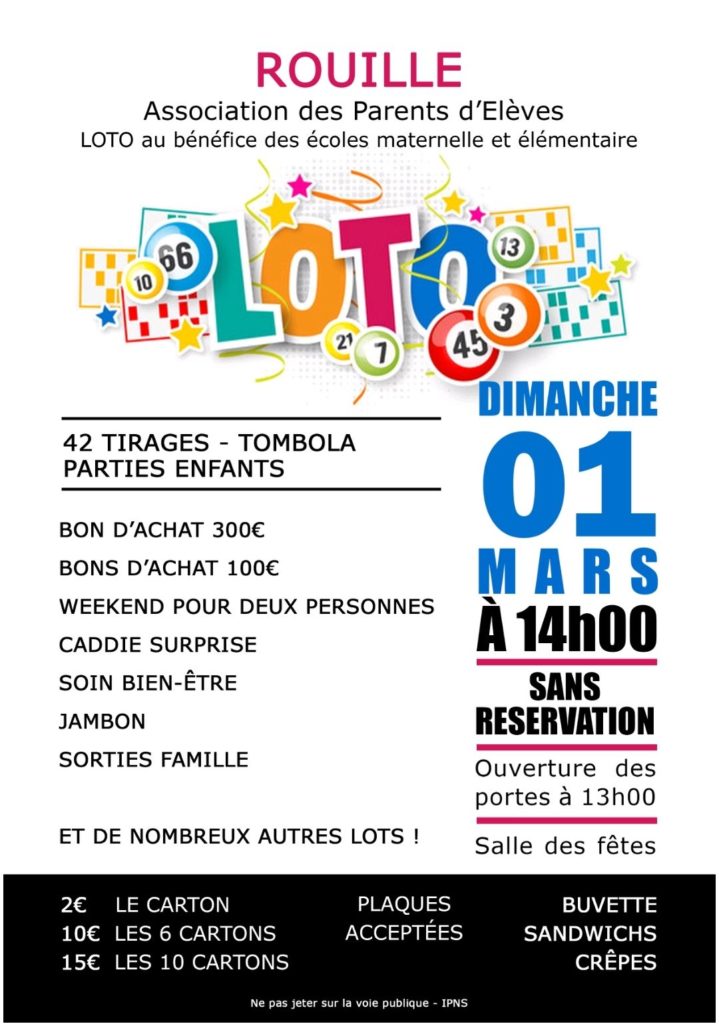 « Tous les Évènements Loto – Rouillé 1 mars - 13 h 30 min > 17 h 00 min « Théâtre “Incorrigible” – Saint-Sauvant Journée portes ouvertes – drone FPV indoor – Lusignan » Ajouter au calendrier Google Agenda iCalendar Outlook 365 Outlook Live Détails Date: 1 mars Heure : 13 h 30 min > 17 h 00 min Catégorie d’Évènement: Loto Organisateur APE Rouillé Lieu salle des fêtes Rouillé Rue de l'Augerie Rouillé, 86480 + Google Map