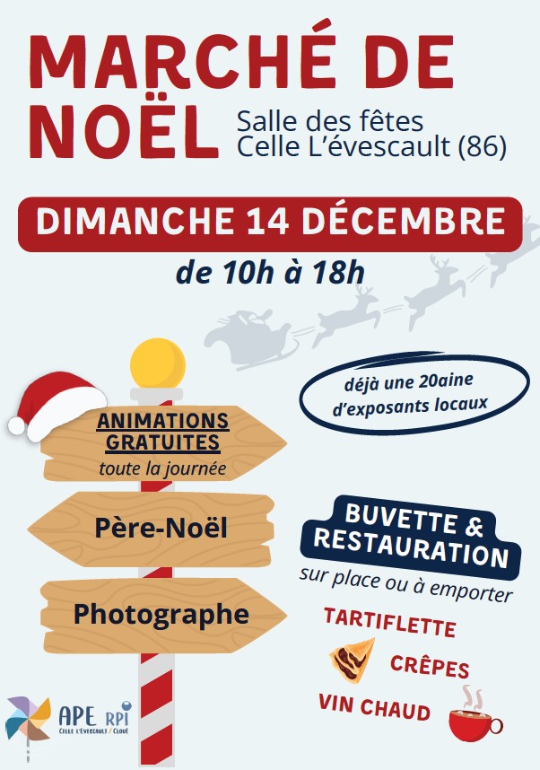 « Tous les Évènements Marché de Noël – Celle l’Evescault (APE RPI Cloué/Celle) 14 décembre - 10 h 00 min > 18 h 00 min « Téléthon – Jazeneuil – Des animations toute la journée ! Concert de Noël » Ajouter au calendrier Google Agenda iCalendar Outlook 365 Outlook Live Détails Date: 14 décembre Heure : 10 h 00 min > 18 h 00 min Catégorie d’Évènement: Marché de Noël Organisateur APE RPI Celle L’Evescault/Cloué E-mail : ape.clouecelle@gmail.com Lieu salle des fêtes de Celle l’Evescault 2 rue de chincé Celle l'Evescault, 86600 France + Google Map