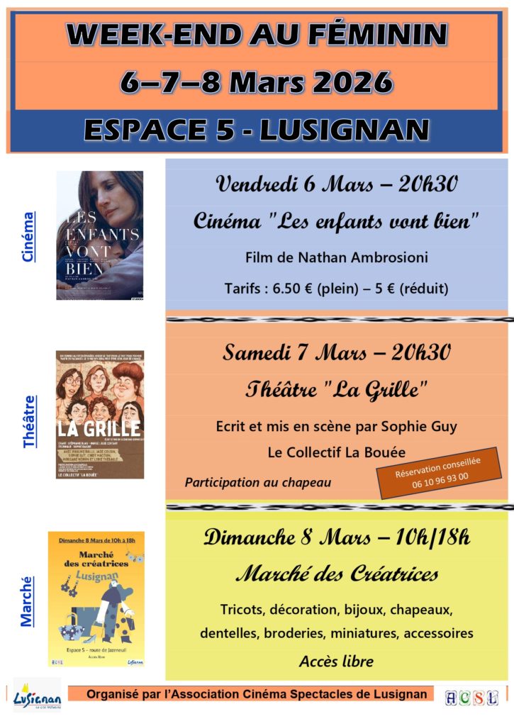 Week-end au féminin (cinéma, théâtre, marché de créatrices) – Lusignan