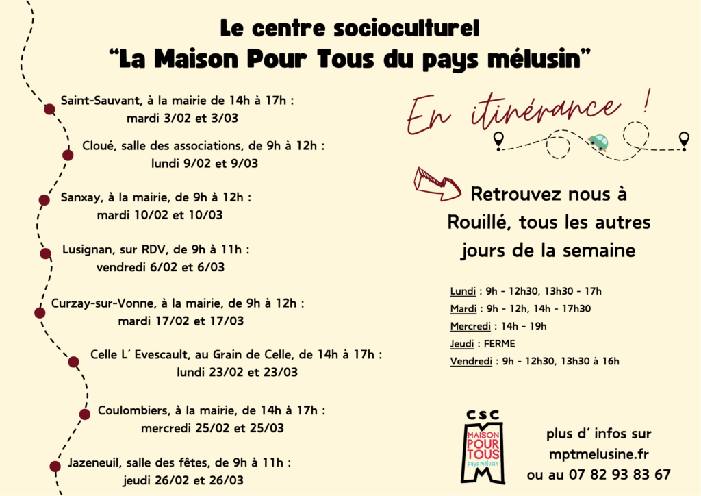 Le centre socioculturel “La Maison Pour Tous du pays mélusin” a la particularité de rayonner sur les 9 communes du mélusin.