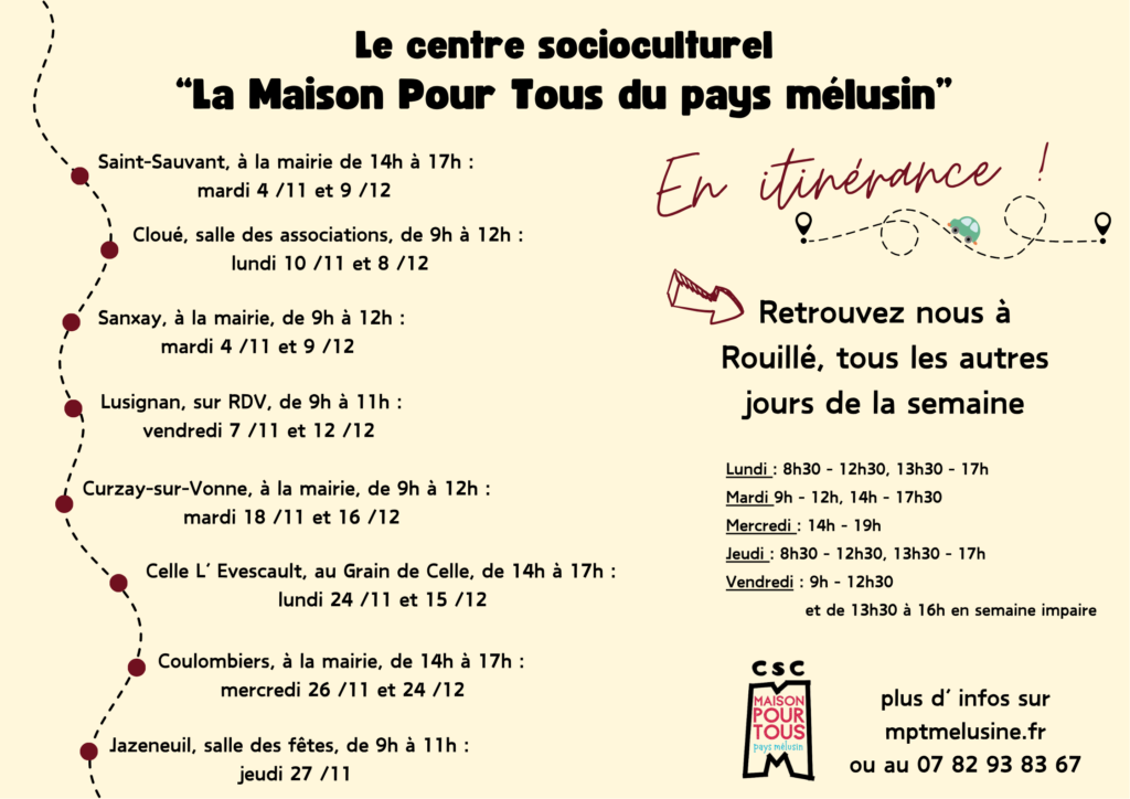Le centre socioculturel “La Maison Pour Tous du pays mélusin” a la particularité de rayonner sur les 9 communes du mélusin.